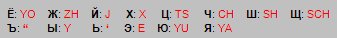 На картинке ниже показано (просто для справки), как будут переводиться в латиницу те русские буквы,